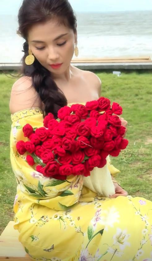 她扎了个麻花辫,画了个红唇,长得还是和以前一样美丽,没看出因为年纪而衰老的变化,只是多了份女人的成熟,还让人感到很有母爱。